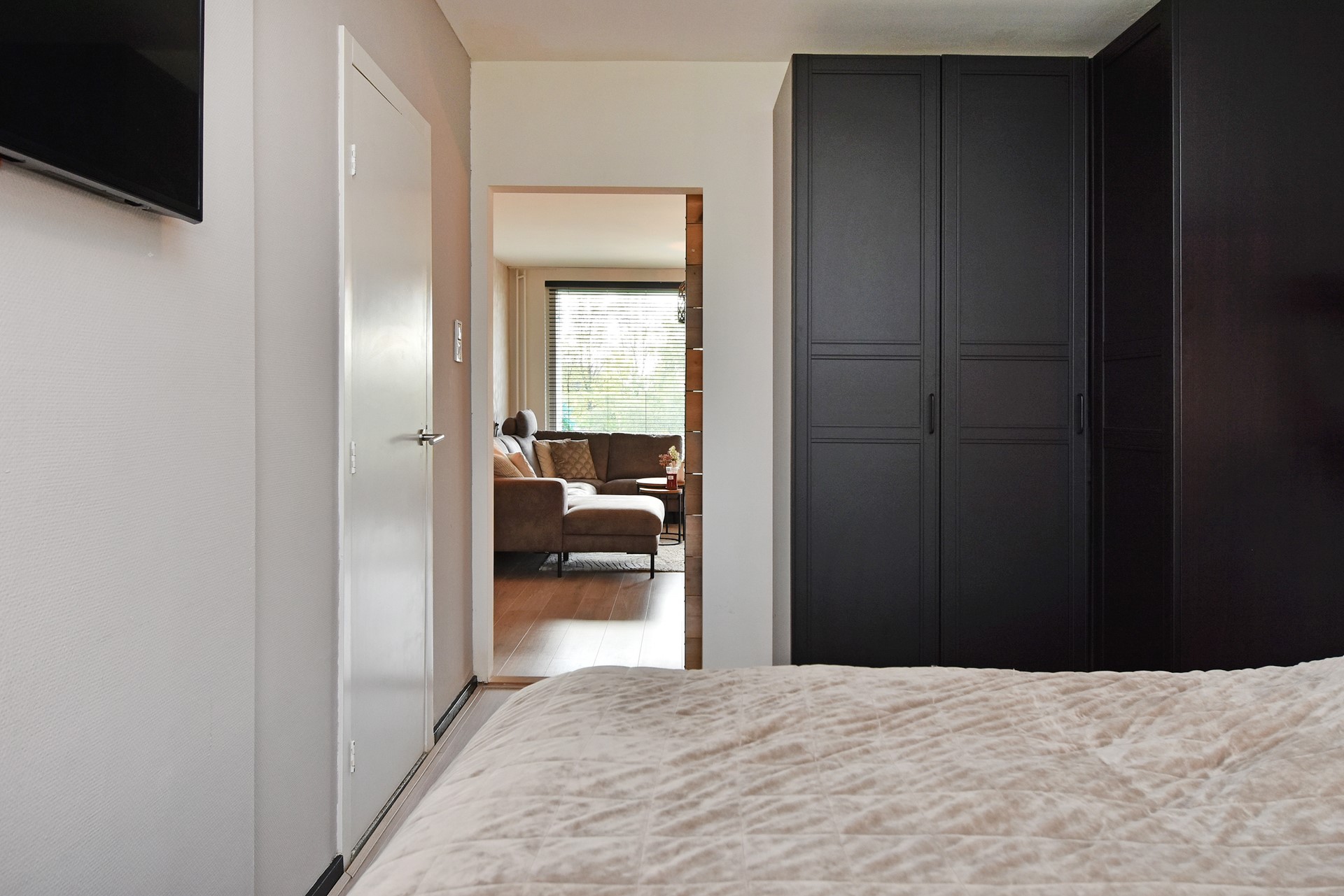 Lichte, achtergelegen slaapkamer met praktische vaste kast en vrij zicht op groenstrook. Compacte badkamer voorzien van wastafel in meubel, designradiator en douchecabine met regendouche. 2e slaapkamer met opstelling voor de boiler. Keuken in hoekopstelling voorzien van koelkast met vriesvak, inductiekookplaat, afzuigkap, vaatwasser, combi oven/magnetron en aansluiting voor wasapparatuur.
