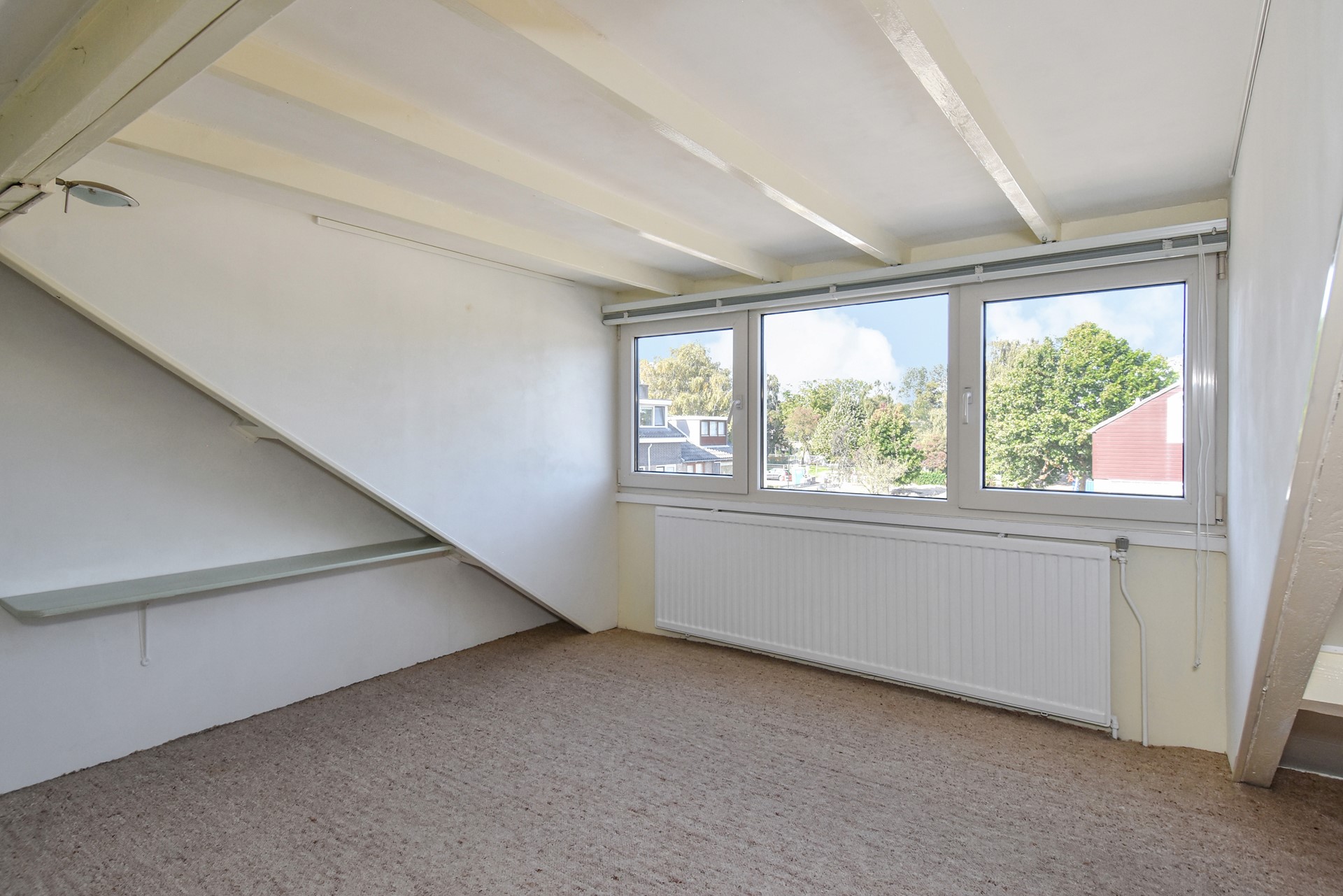 Currently in use as a storage attic with a dormer at the back. Lots of potential! Here you can easily (just like the neighbors) add one or two extra rooms with a roof extension or a bigger dormer.
