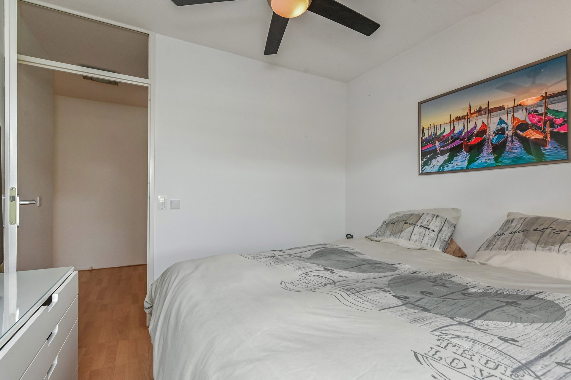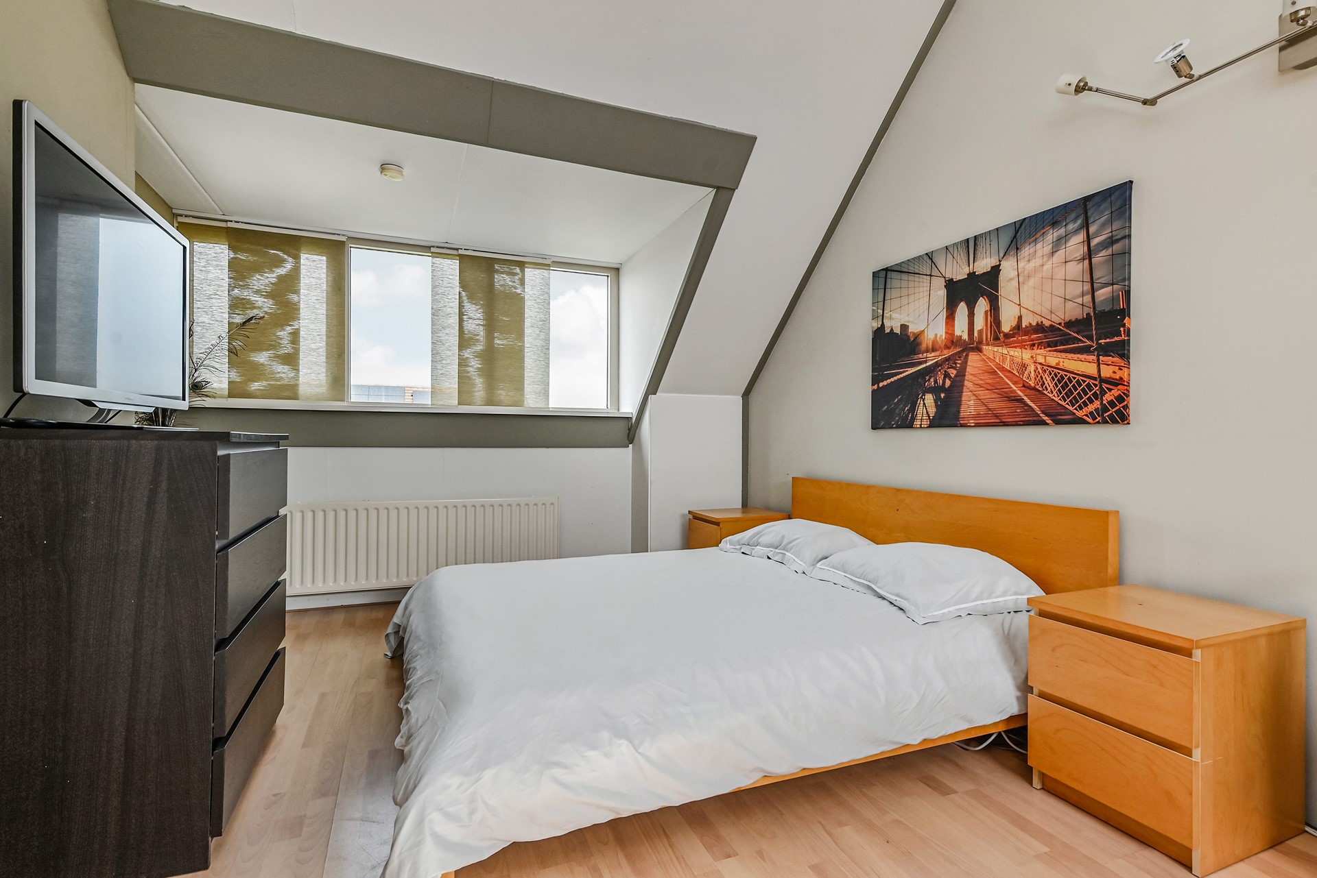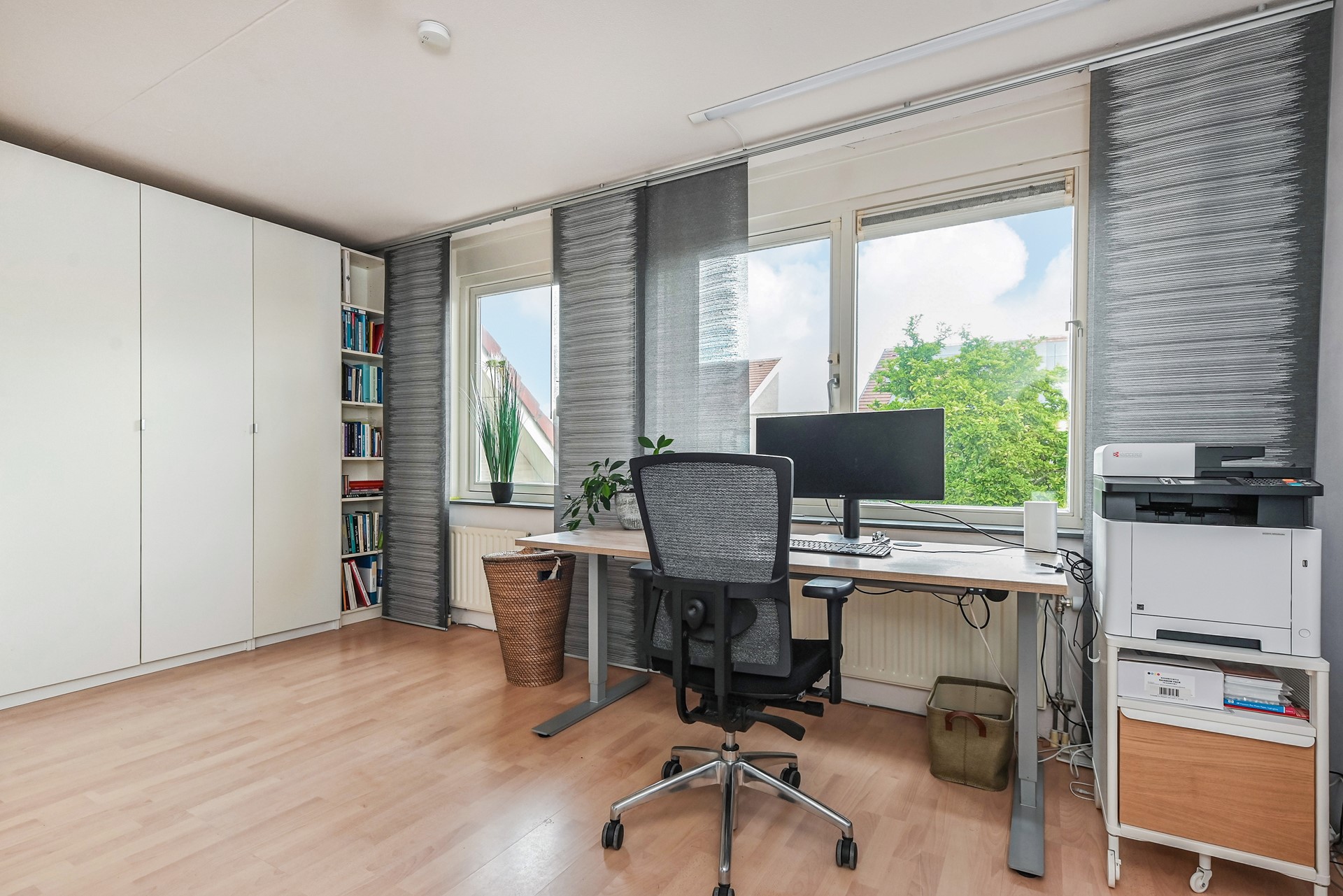 De tweede verdieping is ruim en licht, met een grote slaapkamer en een overloop die je ook als speelplek, werkhoek of hobbyruimte kunt gebruiken. Hier vind je ook de wasmachine- en drogeropstelling, de CV-ketel en niet onbelangrijk heel veel bergruimte op deze verdieping.