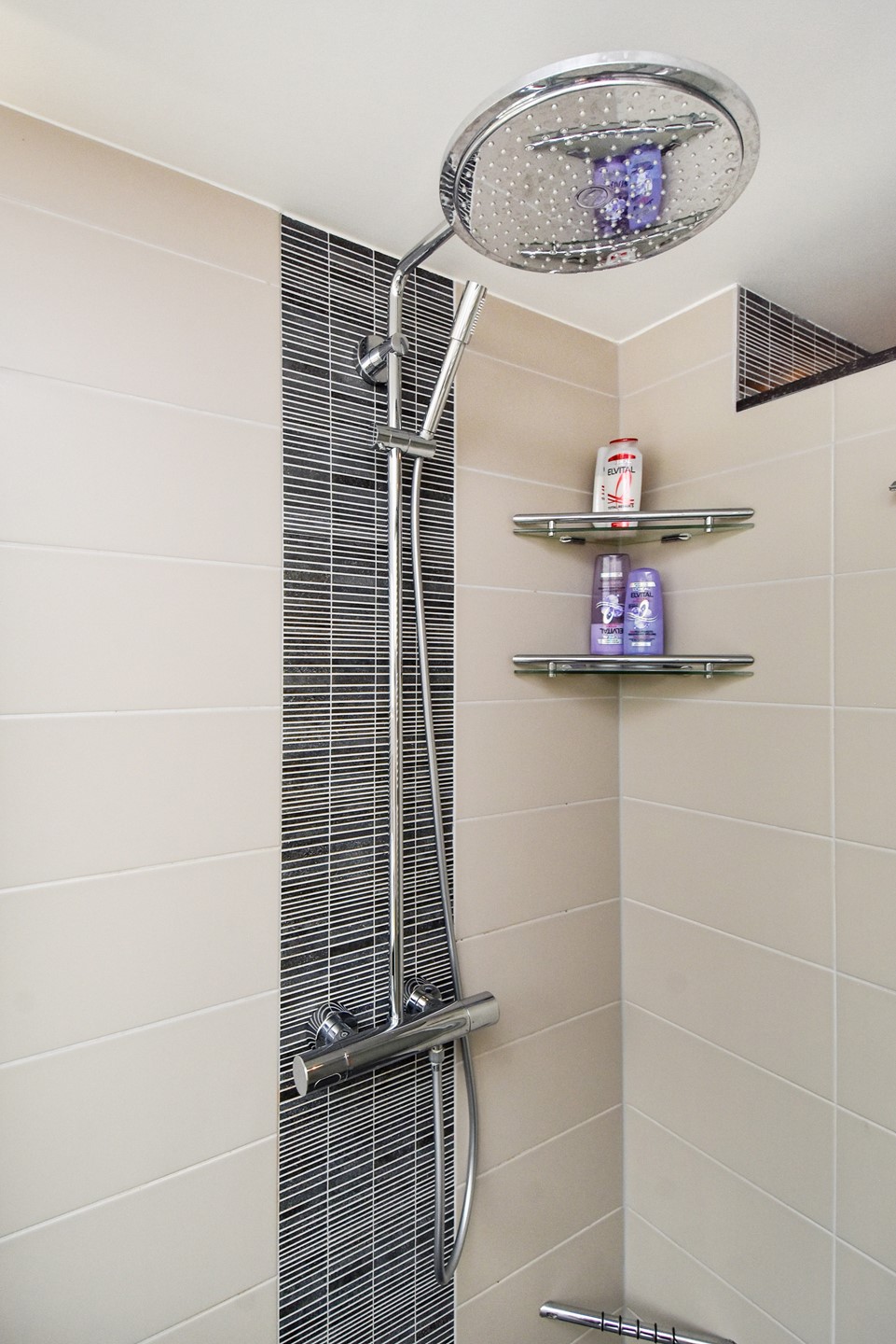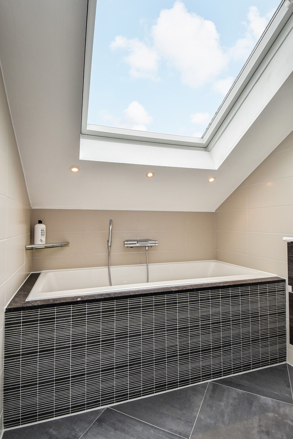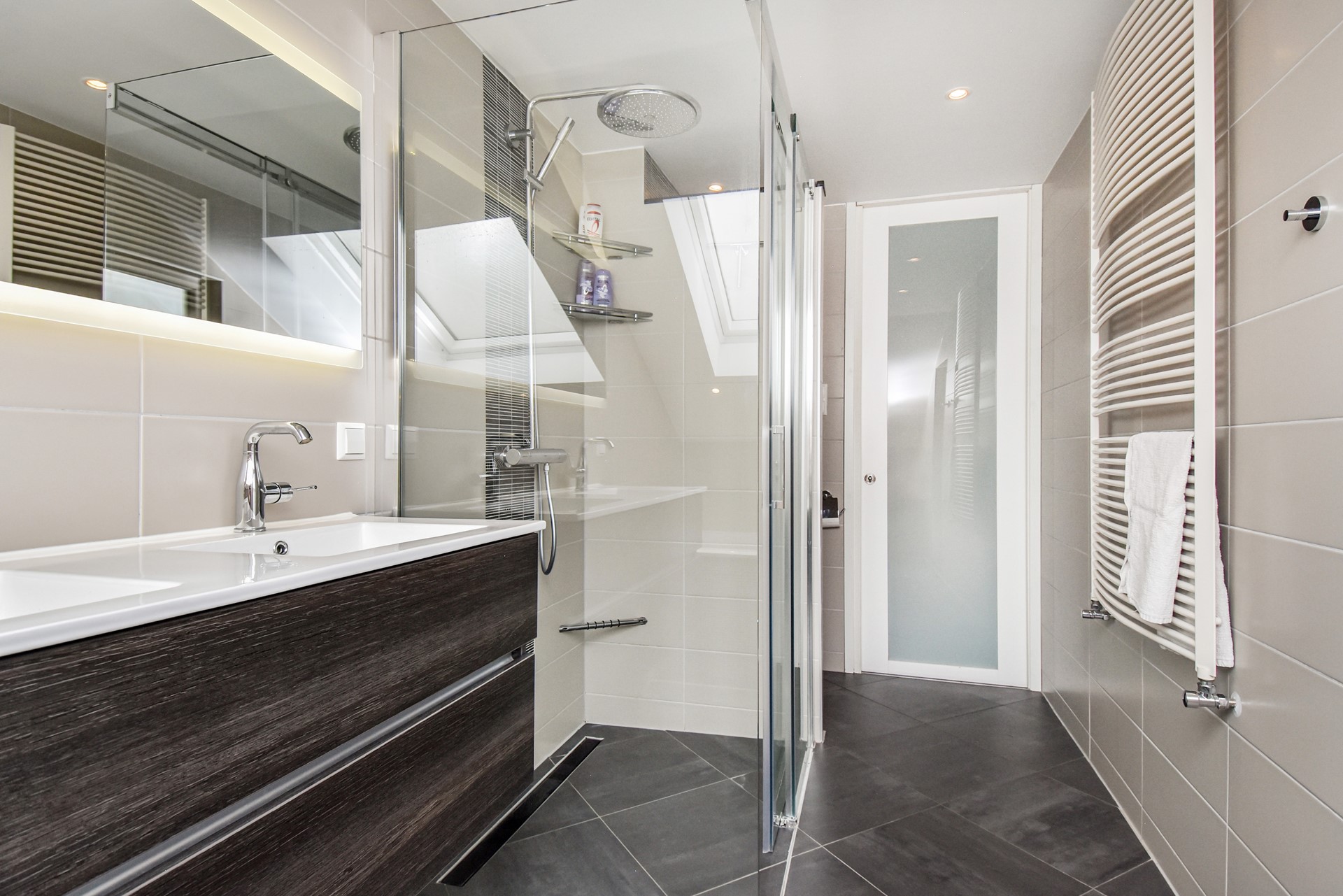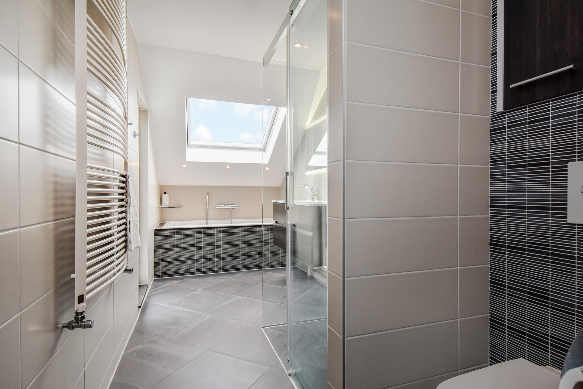 De badkamer is een oase van ontspanning, modern, ruim en luxe uitgevoerd met een ligbad, inloopdouche, dubbele wastafel en wandcloset. Op de overloop vind je bovendien een handige wasruimte met aansluitingen voor de apparatuur.